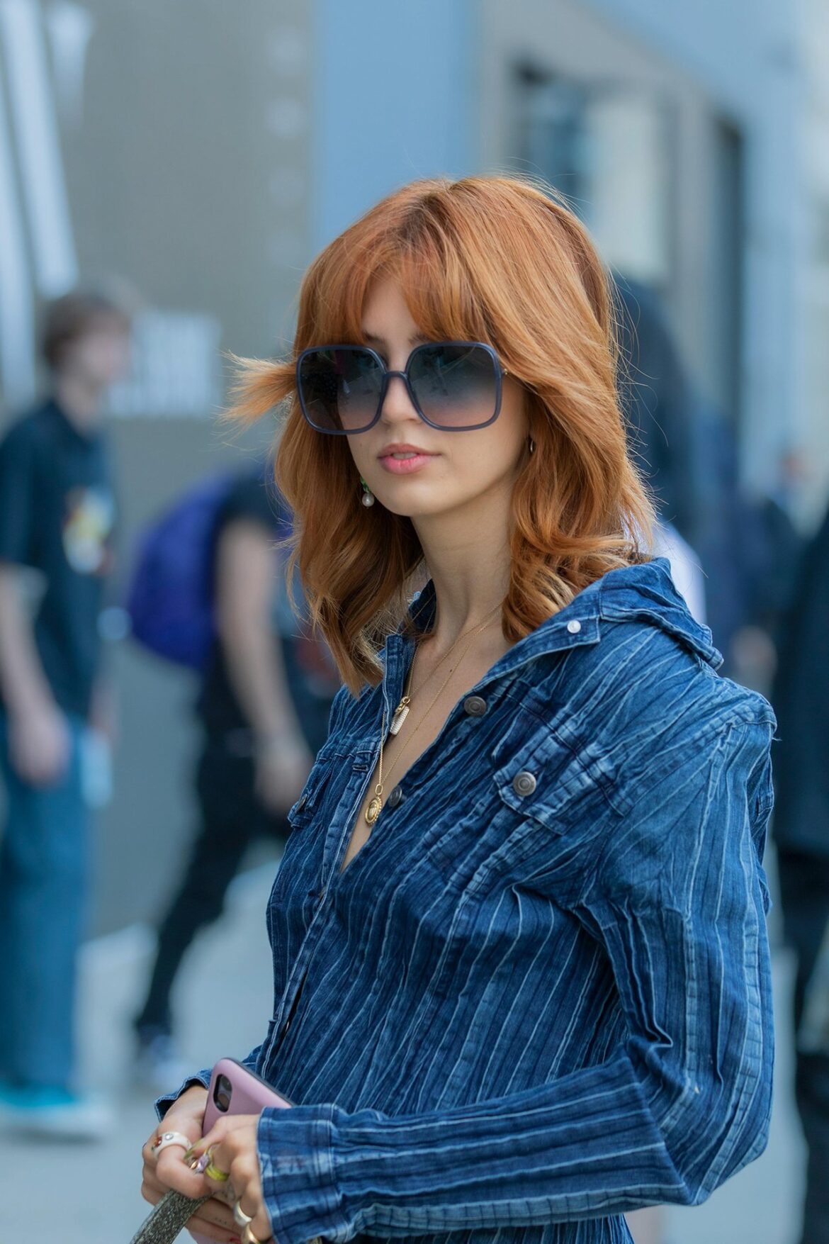 Matching sets are always a winning choice, and if you want an easy way to rock suede, coordinating pieces are the way to go. Sasha looks absolutely stunning in a suede jacket paired with a matching mini skirt, crafting the ideal fall outfit. To keep things seasonally appropriate, she completes her look with sheer tights and stylish chocolate heels, creating an ensemble that’s sure to turn heads.